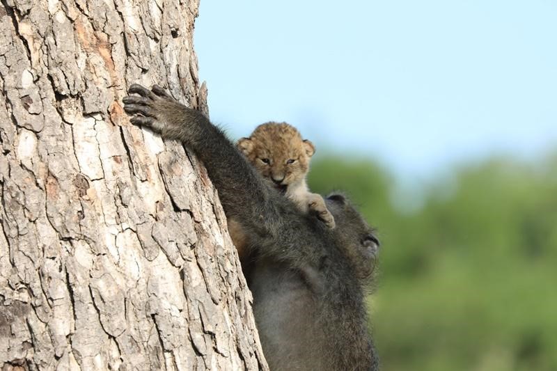 ในปี 2563 ที่ผ่านมา ได้มีรายงานจากสื่อข่าวในต่างประเทศว่า มีเจ้าหน้าที่พบเห็นลิงบาบูน กินลูกสิงโต ในสวนสัตว์แห่งหนึ่งบริเวณแถบทางตะวันออกเฉียงเหนือของแอฟริกาใต้ โดยก่อนที่มันจะนำลูกสิงโตขึ้นไปบนต้นไม้นั้นพบว่าลิงบาบูนและลูกสิงโตตัวนี้มีการต่อสู้กันจนลูกสิงโตทนไม่ไหวเนื่องจากร่างกายไม่แข็งแรง ดังนั้นมันจึงกลายเป็นอาหารของลิงไปโดยปริยาย ซึ่งหากใครที่เคยเห็นภาพนี้ก็อาจมองว่าคล้ายกับฉากหนึ่งในภาพยนตร์เรื่อง LION KING แต่ความเป็นจริงมันโหดร้ายยิ่งกว่านั้น